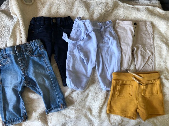 4 pantalons et 1 short en 3 mois marque kiabi . Excellent état
