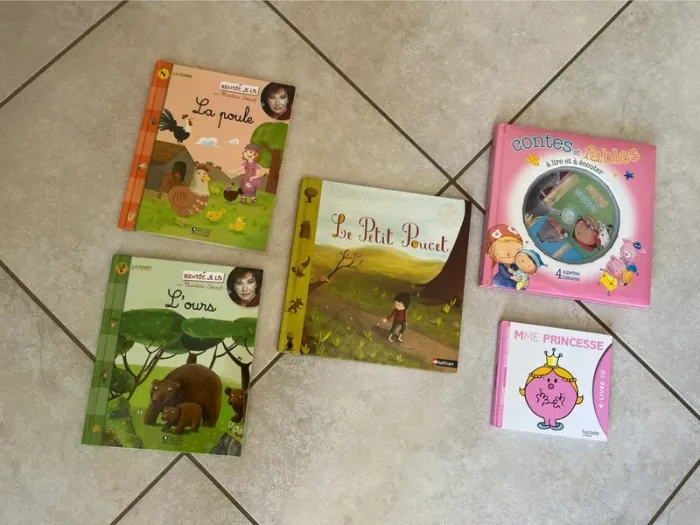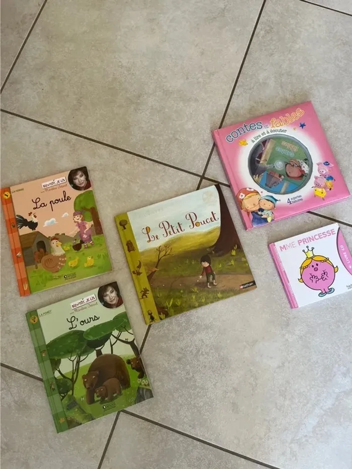 5 livres cd Le petit poucet Ours et la poule de Marlène jobert Mme princesse Livres de contes