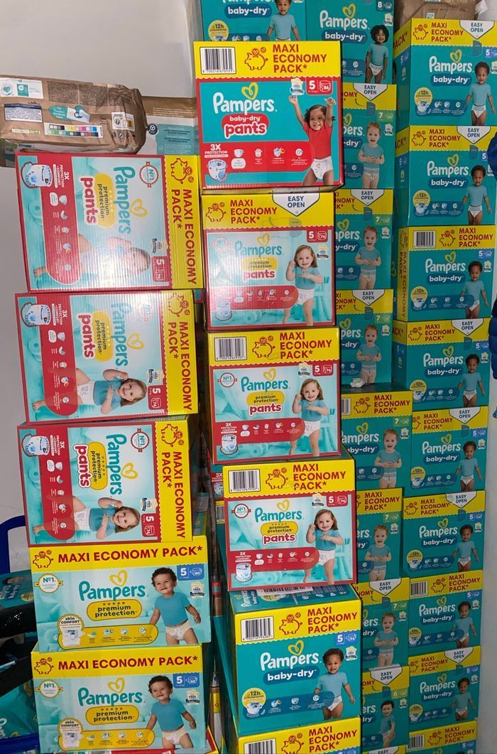 Bonjour Couches Pampers Baby-dry Taille 5 x94 couches Taille 6 x 80 couches Taille 7 x 72 couches Taille 8 x 64 couches Couches Pampers Pants Taille 5 x 86 couches Taille 6x 74 couches Taille 7x 62 couches Taille 8 x 58 couches Couches Pampers pants prenium protection: Taille 5 x 74 couches 23 euros le carton 45 euros deux cartons Merci de me contacter pour créer l’annonce.