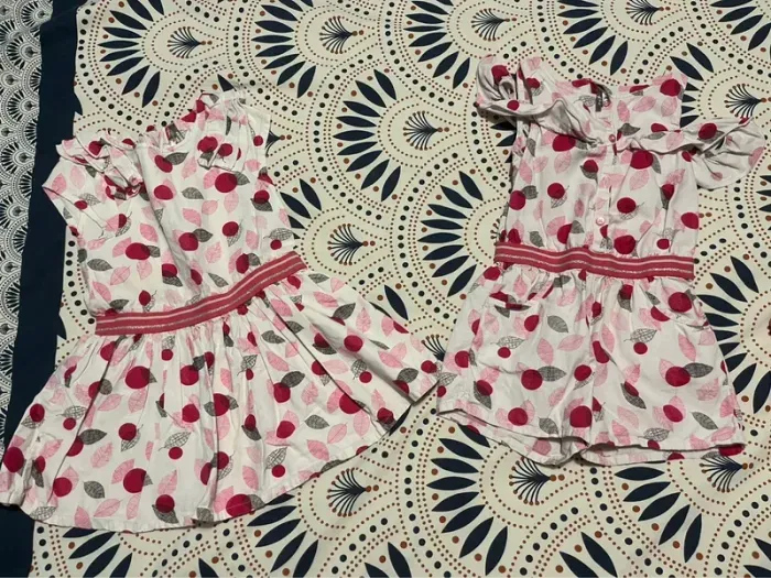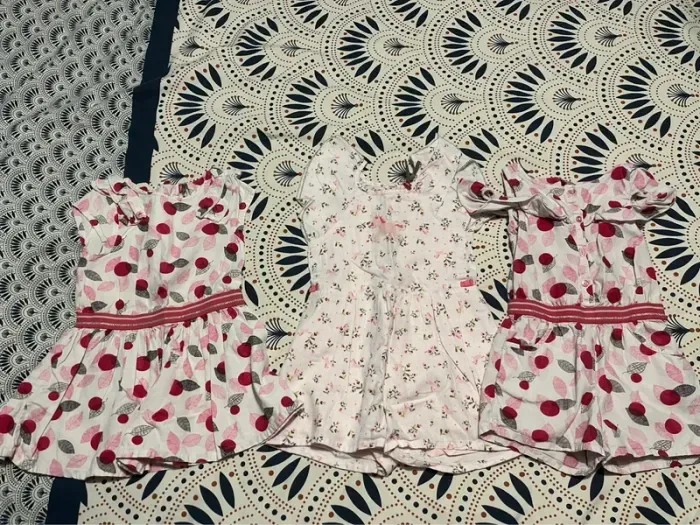 Lot pour l’été en 3 ans composé 2 combi short ( la Rose pale étiquette 24 mois mais taille plus grande que la 3 ans ) 1 robe Casi neuve très peu porté et acheté neuf #titesteph95troisans