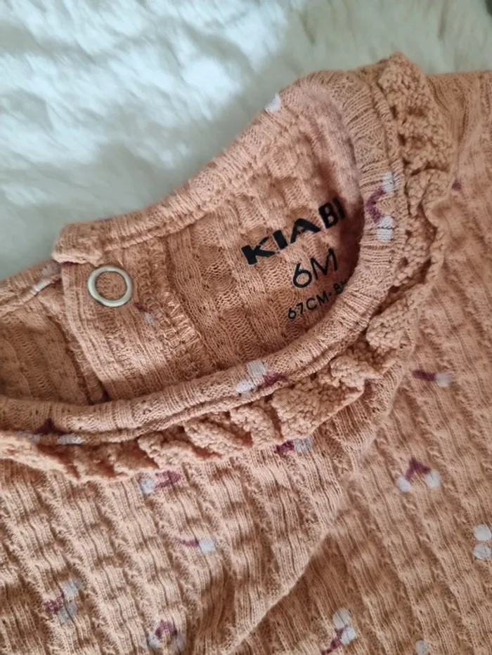 Tee shirt manche courte gaufré avec motif cerises Le top: ouverture derrière, dans le dos par bouton pression, très pratique à enfiler ! KIABI 6 MOIS Neuf, jamais porté