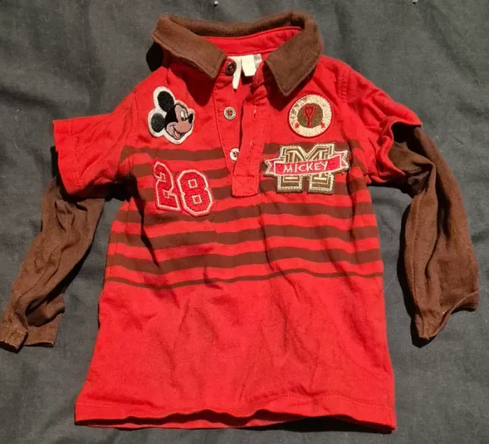T-shirt manches longues de couleur rouge et rayures marrons et avec les manches marrons Taille : 9 m/71 cm