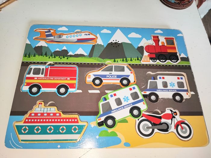 Puzzle musical en bois véhicules Usure normale Vendu sans les piles #familiadjong_jouets