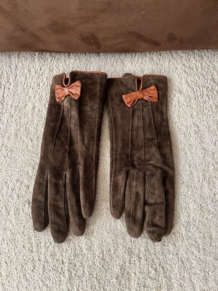 Gants daim promod marron noeud en cuir - photo numéro 1