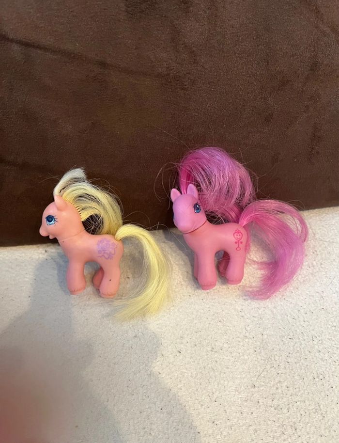 vends un lot de 2 petit poney vintage my little pony MLP G2 : baby fleur flower et honeyberry Marque hasbro En bon état : manque un œil brillant à l’un #mlpcarolightm