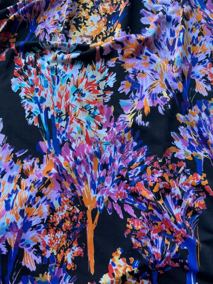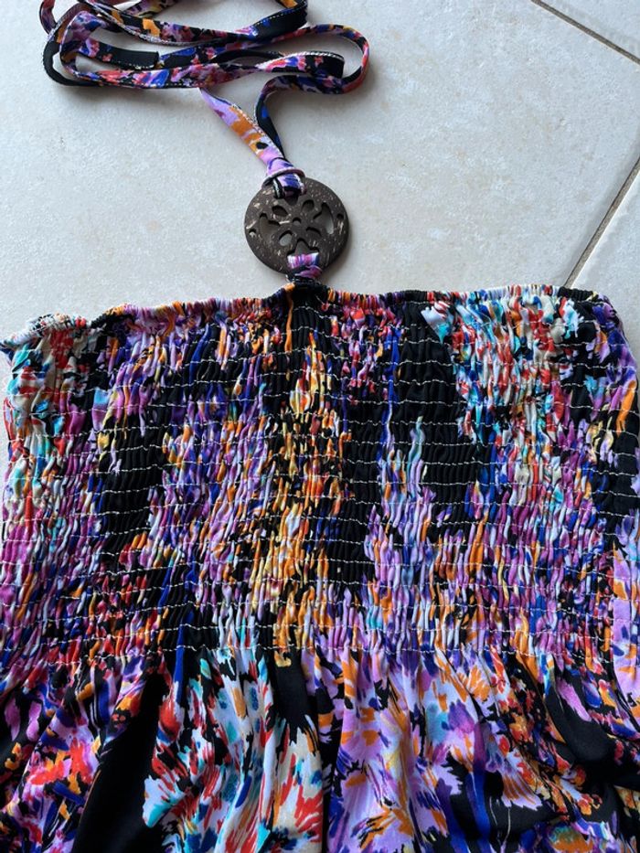 Robe légère Noire violet Arbres multi couleur sur le dessus Ficelé qui se noue derrière le cou #vêtementfemmemarriettedeborah