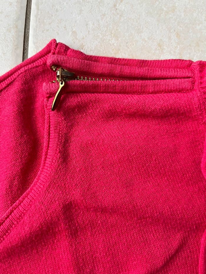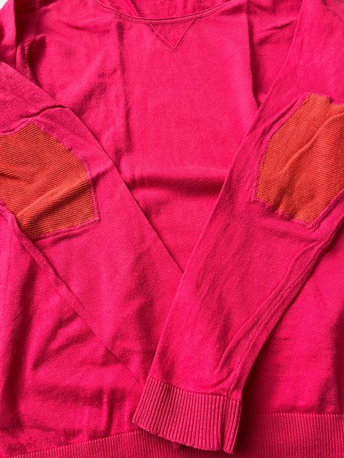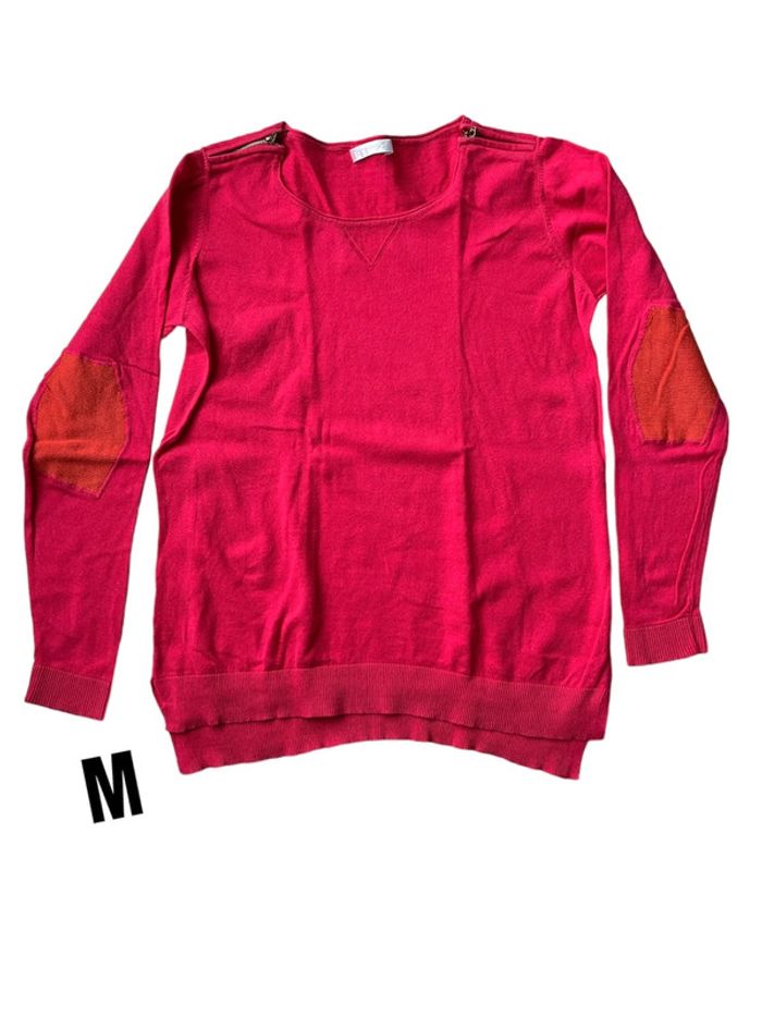 Pull rouge rose Fermeture sur les épaules Coudière #vêtementfemmemarriettedeborah