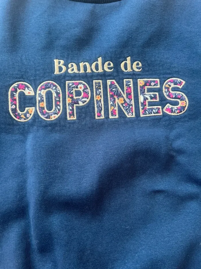 Pull bleu Resserré aux manches Bandes de copines #12ansfillemarriettedeborah