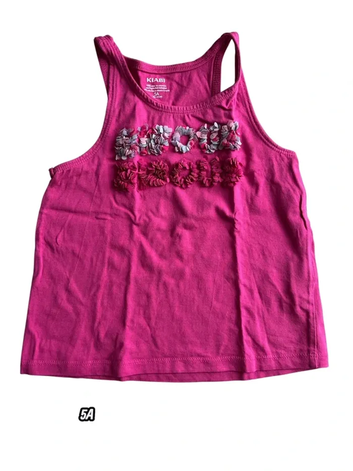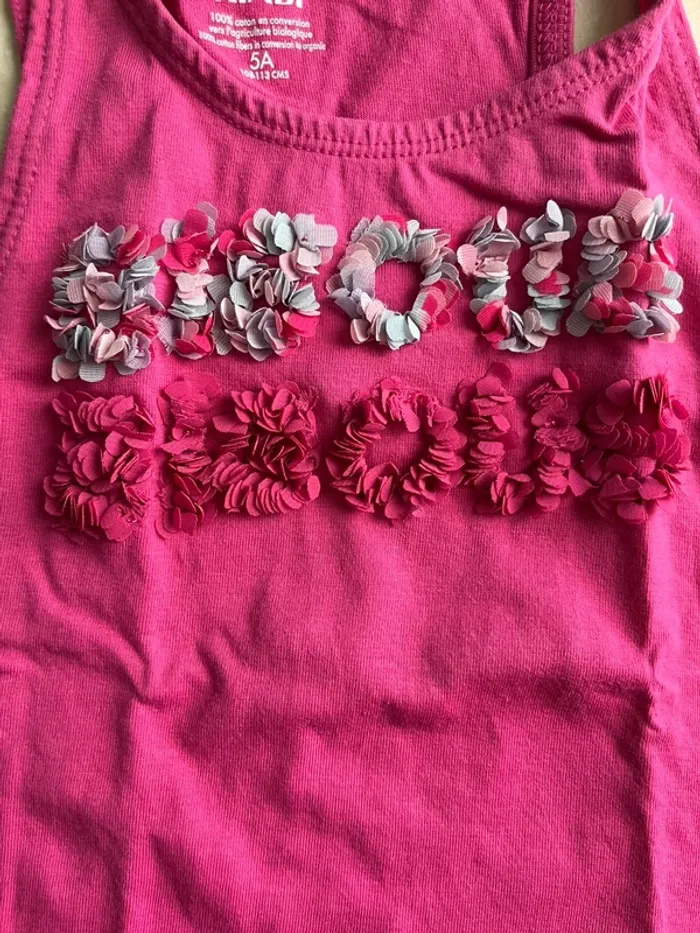 Débardeur rose fushia Avec bisous en relief en fleurs #5ansfillemarriettedeborah