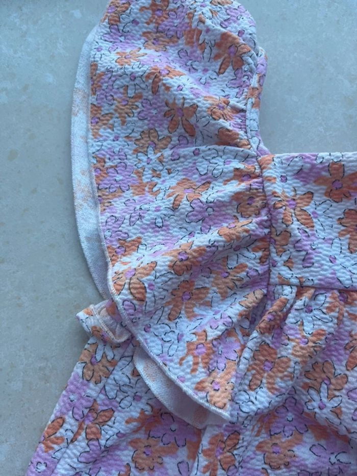 Robe sans manches à grosses bretelles Fleurs roses et oranges et blanches Très jolies porte #4ansfillemarriettedeborah