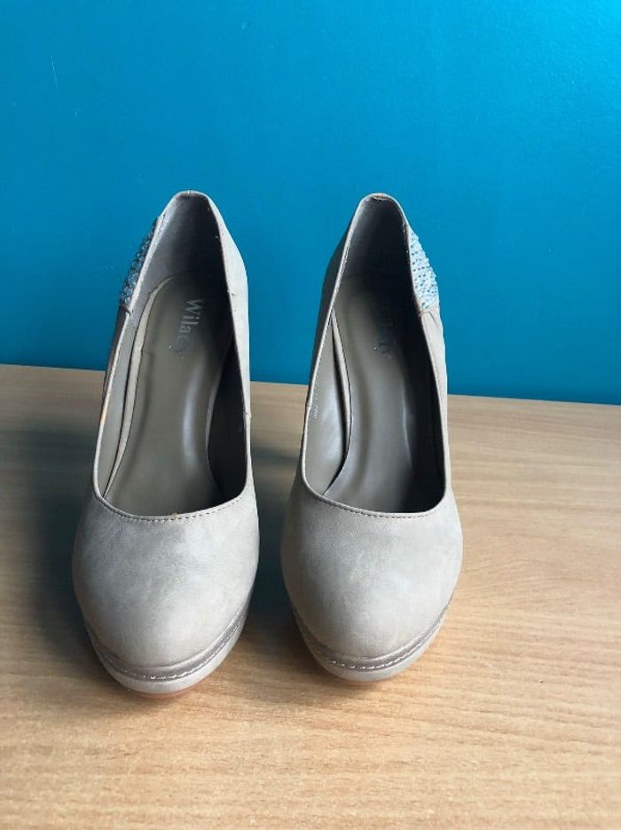 chaussures à talons avec plateforme Couleurn taupe Jamais portées Quelques strass manquants Taille 39