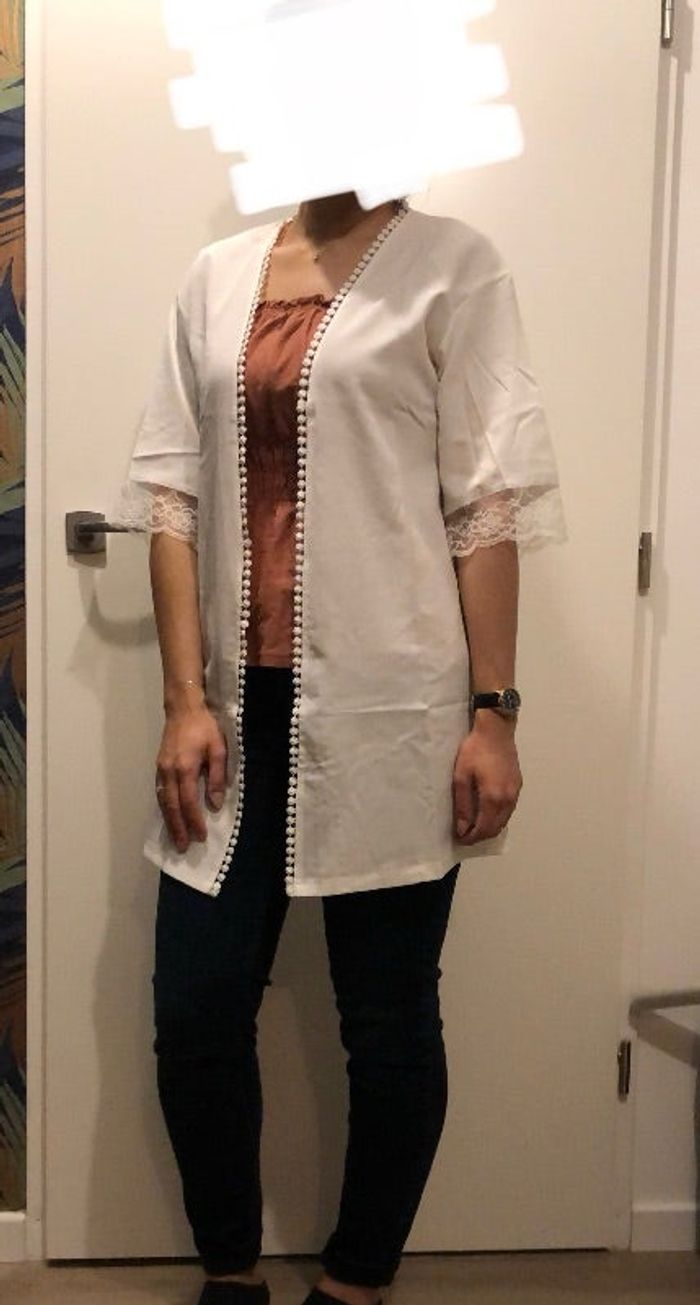 peignoir en satin blanc et dentelle Très bon état, rarement porté Taille S Manches 3/4