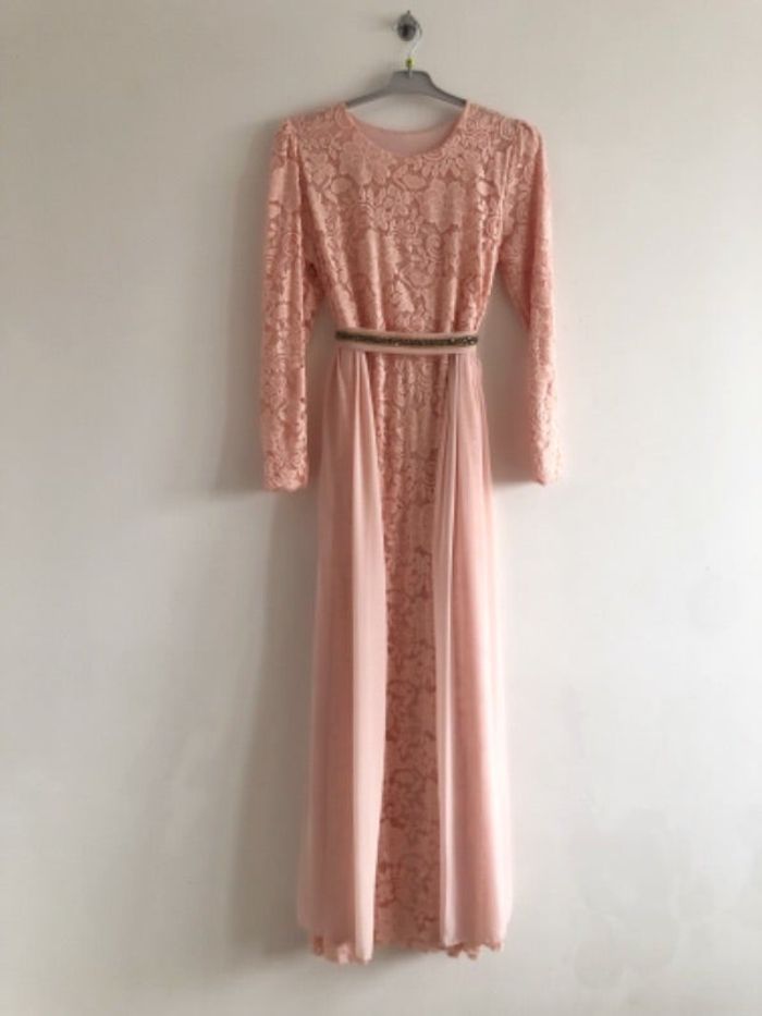 Robe longue manches longues Haut en dentelle Entièrement doublée Couleur saumon Taille unique Jamais portée, neuve sans étiquette