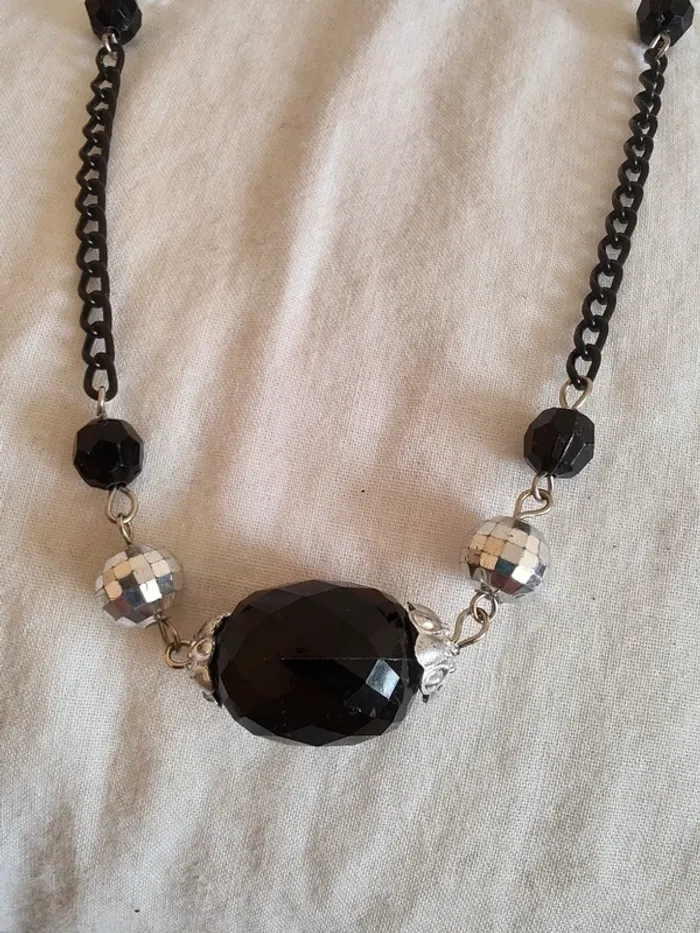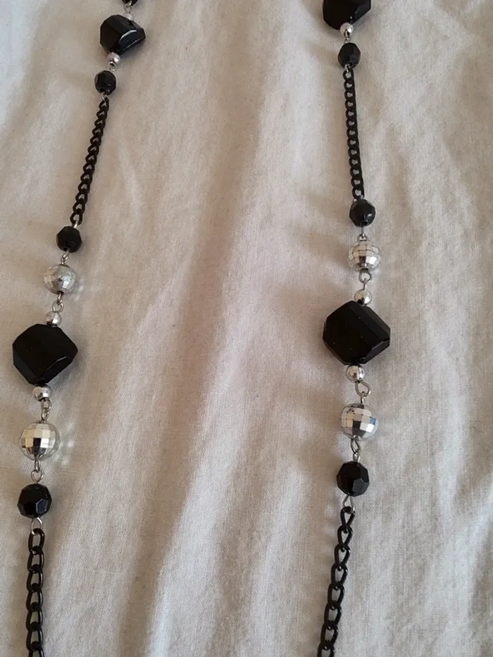 Joli sautoir fantaisie couleur noir/ argenté - longueur totale 49 cm