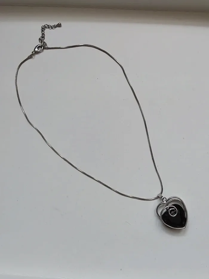 Collier fantaisie en très bon état - Forme coeur 🖤 - Longueur totale 23 cm + réglable 3 cm