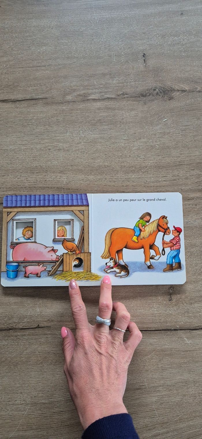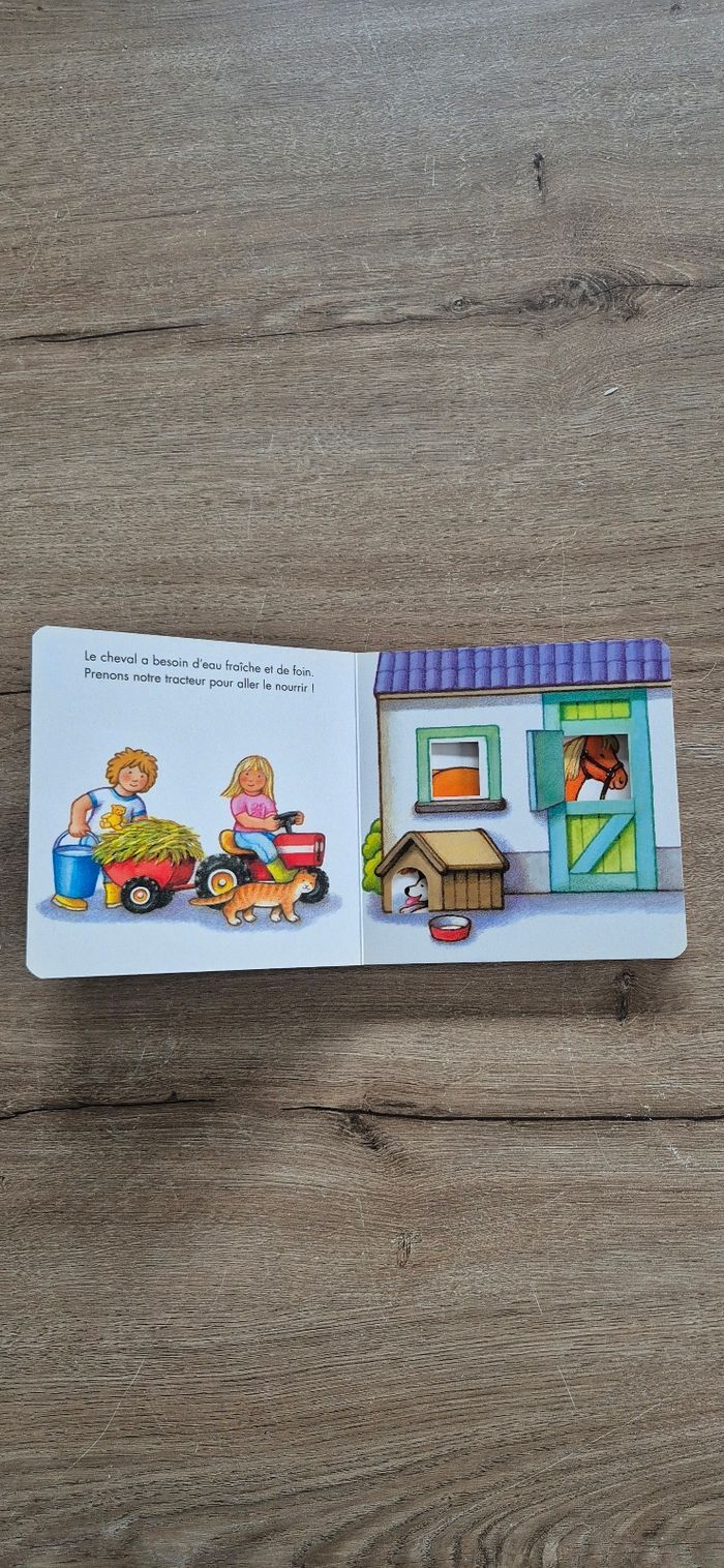 Livre à pages cartonnées avec des fenêtres Les véhicules de la ferme Ravensburger Très bon état