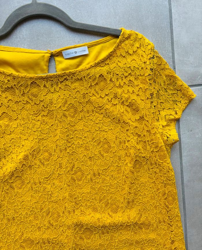 Magnifique robe jaune en dentelle Cache Cache neuve - photo numéro 3