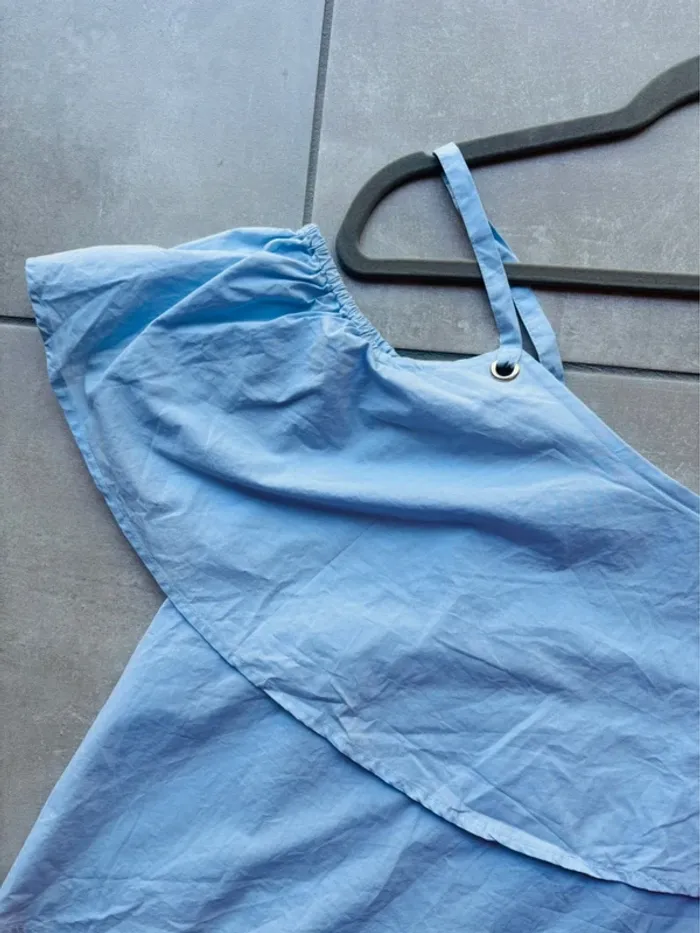 Jamais porté. Taille L, il taille bien. Col bardot. Très joli bleu ciel.