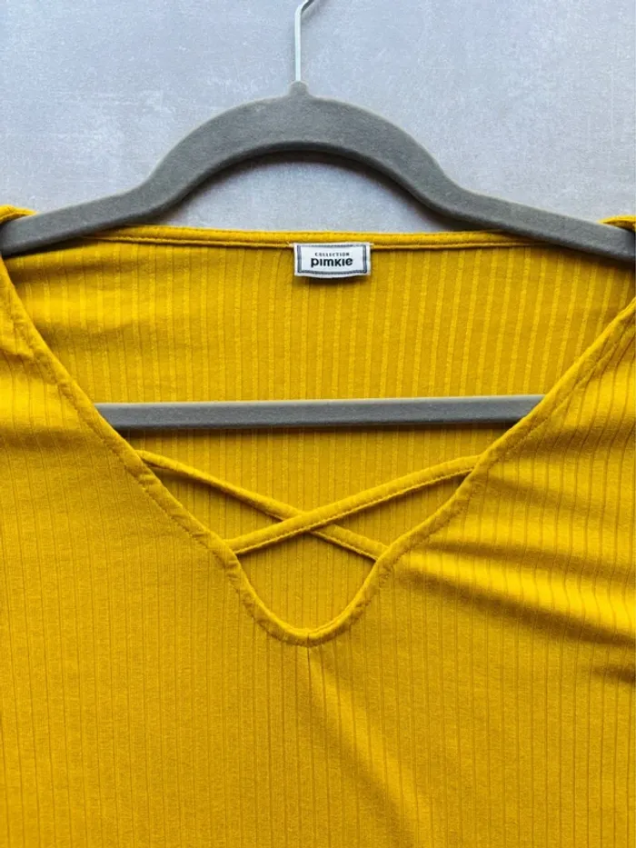 Joli T-shirt côtelé jaune croisé Pimkie neuf