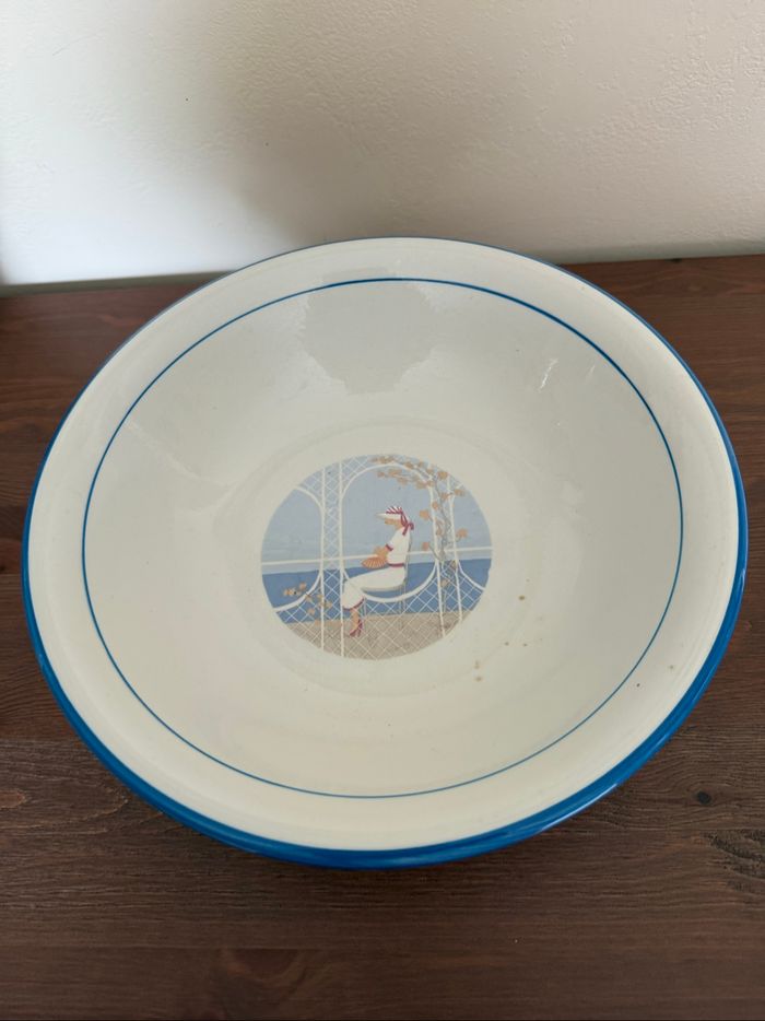 Plat de service creux modèle Pago Quelques taches à l’intérieur voir photo Marque Primula Made in Italy. Année 1985 Diamètre 26 cm