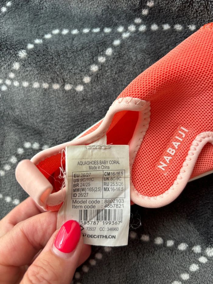 Chaussures aquatiques corail aquashoes pour permettre aux bébés / enfants de se déplacer en bord de mer, sur le sable, les galets ou les rochers. Les chaussures aquatiques Aquashoes assurent le confort de votre bébé lors vos après-midis à la plage. Taille 26/27 Convient plus pour un 26, je trouve.