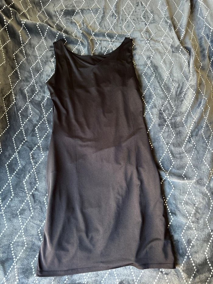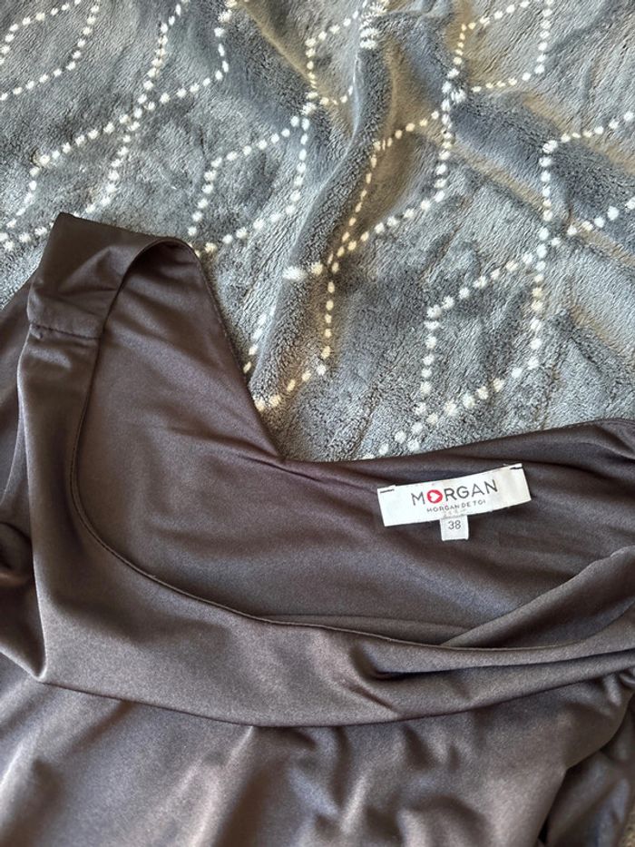 Robe noire. Devant doublée, plissée. Taille 38 Marque Morgan. Excellent état. Près du corps. Col V dans le dos.