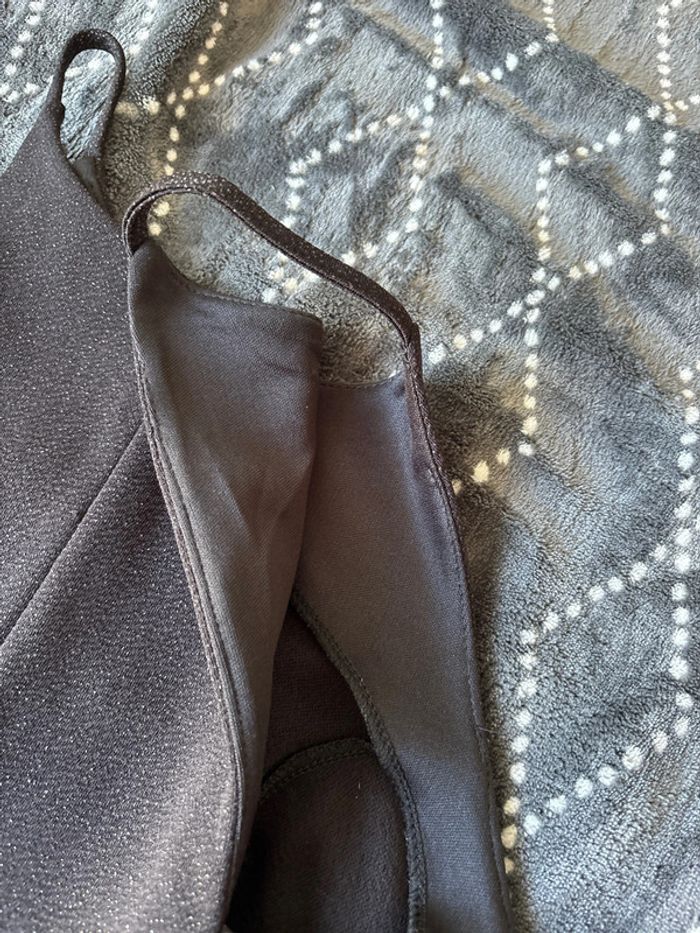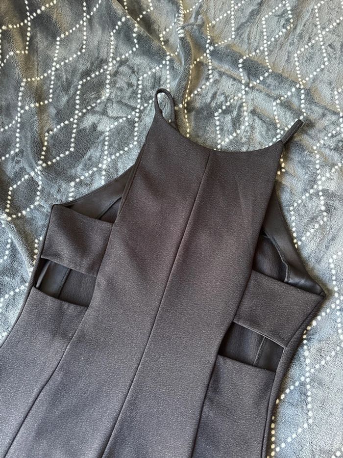 Robe noire pailletée. À bretelles. Dos avec des empiècements ouverts. Marque Morgan. Taille XS Excellent état.