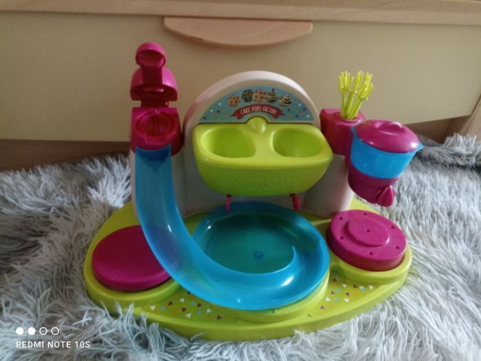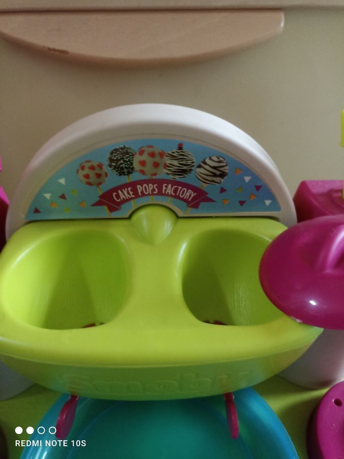 Cake Pop Factory Smoby Chef neuf Manque juste l'emballage d'origine Le set contient la machine pour réaliser les cake pops, 1 moule à cake pops (4 empreintes), 2 récipients pour mélange, 1 cuillère doseuse, 1 spatule, 2 plateaux à pochoirs, 8 bâtonnets à cake pops, 4 fiches de recettes, 16 étiquettes, 2 mélange de gâteau blanc (8 cake pops) #ap03jouets #smobychefcakepopsfactory #cakepopfactory