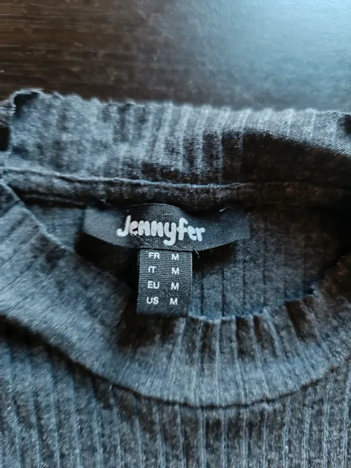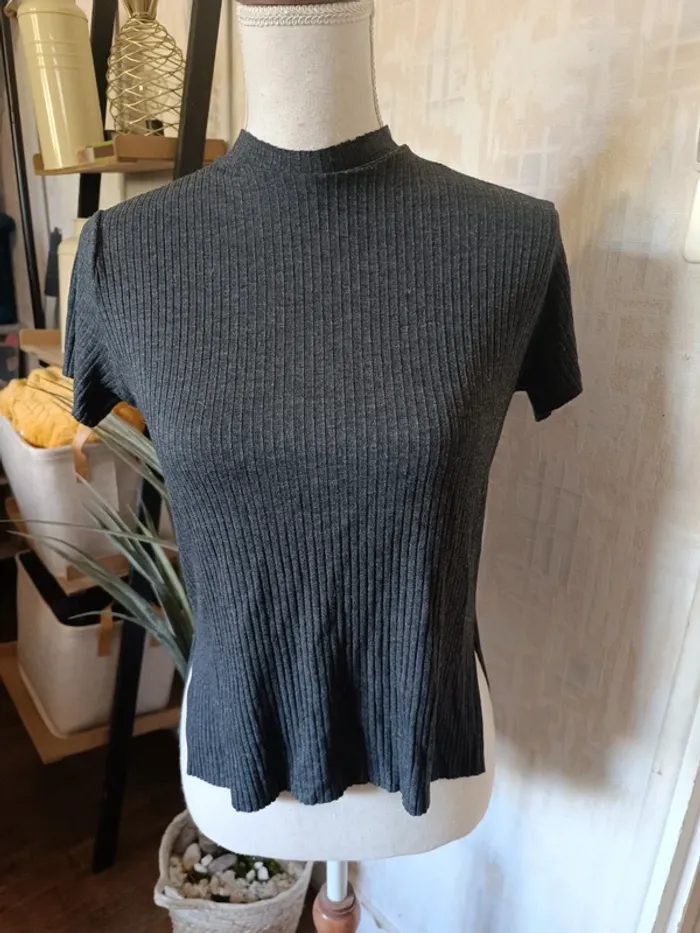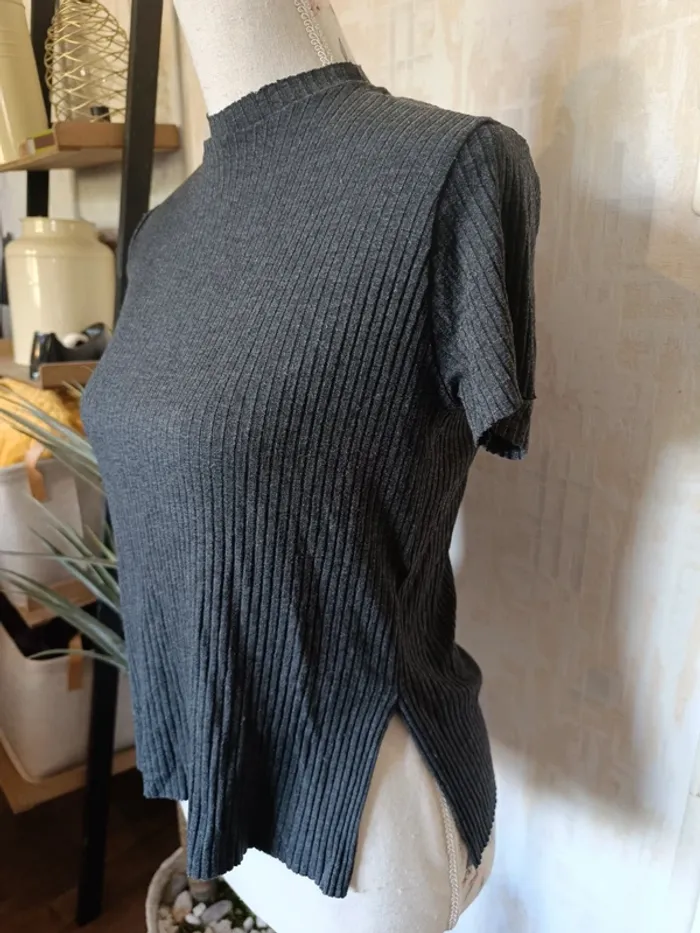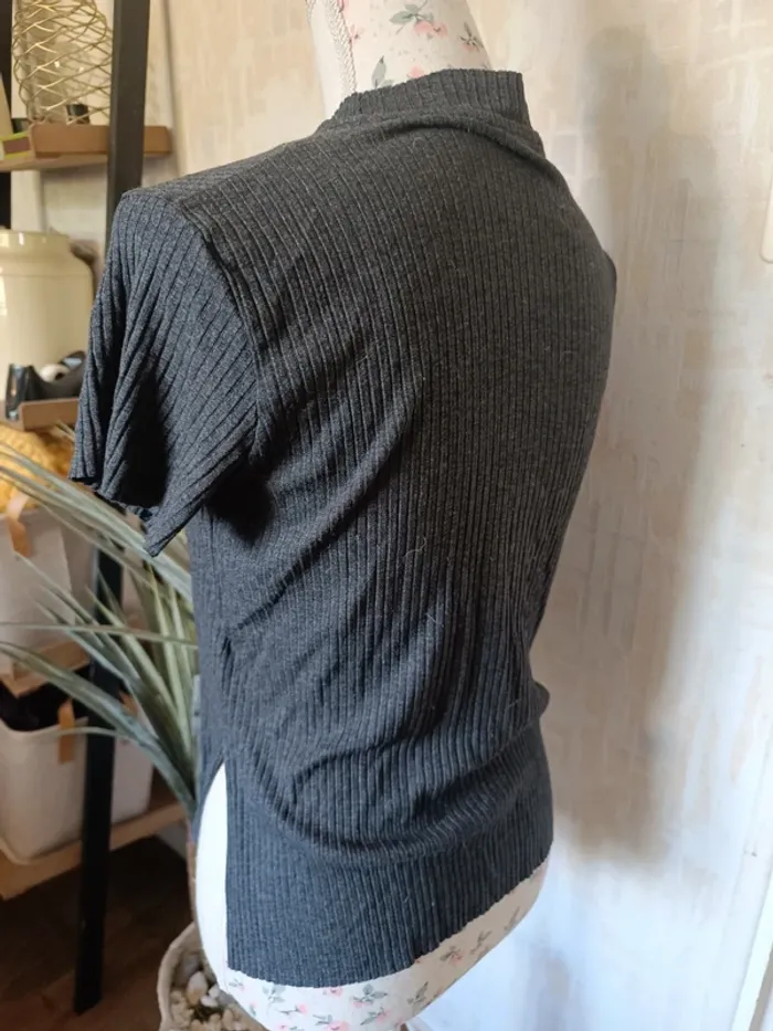 Haut JENNYFER Gris anthracite Col montant Manches courtes Fendu dans le bas TAILLE M TRES BON ETAT Allez voir mes autres ventes!