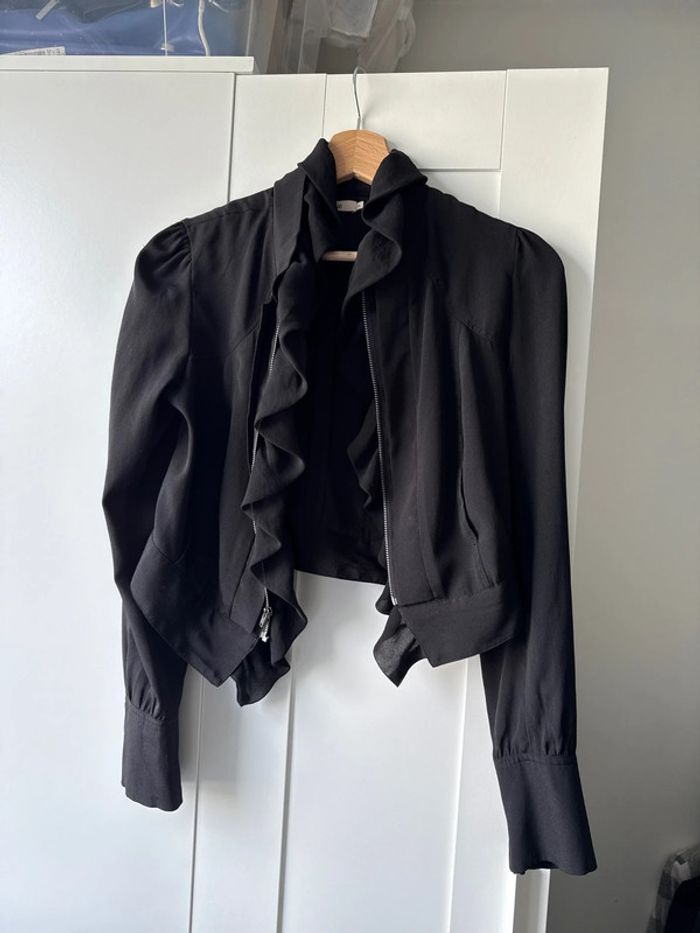 Veste femme courte manoukian la partit froufrou à l’intérieur s’ajoute et peu s’enlever en détachant les boutons Les photos montrent l’état exact du vêtement