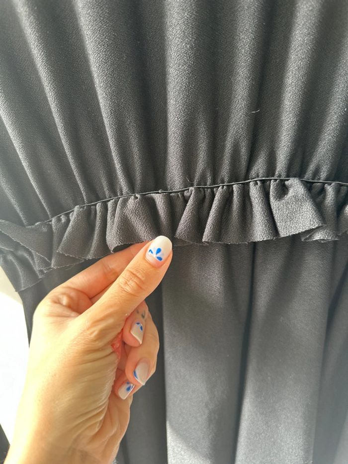 Robe noire manche longue pas épaisse type elastane Petit défaut au niveau de la ceinture qui est d origine mais les photos montrent l’état exact du produit et en vrai ça ne se voit pas sauf si je le montre.