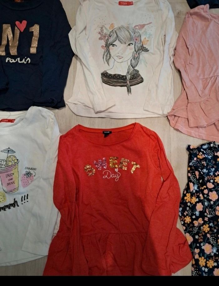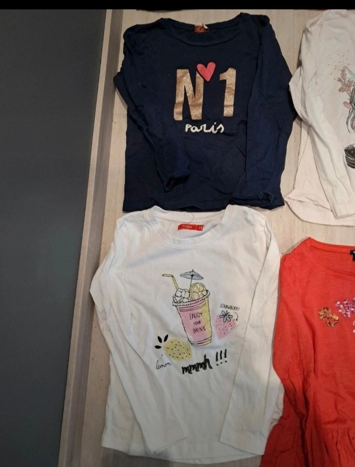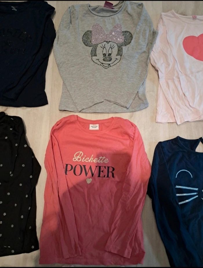 Lot de t shirts ML 10neufs et 3tbe 1 t shirt miraculous gris paillettes rouge neuf passé 1x en machine 1 t shirt rose tissaia avec manches évasées neuf passé 1x en machine 1 t shirt bleu marine chat sequin neuf passé 1x en machi 1 t shirt tissaia beige visage fille paillettes neuf passé 1x en machine 1 t shirt kiabi rouge volant bas peut être porté 1x doute sur Neuf 1 t shirt c&à bleu à fleur neuf passé 1x en mach 1 t shirt beige tissaia limonade paillettes neuf passé 1x en mach 1 t shirt tape à l'oeil bleu marine Paris neuf passé 1x en machine (peut être porté 1x) 1 t shirt col montant noir rond paillette argent neuf passé 1x en mach 1 t shirt rose bichette tape à l'œil tbe porté 2 à3x 1 t shirt kiabi bleu marine Houston neuf passé 1x en machine 1 t shirt minnie sequin plus epais porté 4 à 5x tbe vient de disney 1 t shirt rose ballon porté 4 à5x tbe Lot depareillable avec un autre de la page #laul57fille6ans Maison non fumeur, pas d'animaux, premiere main