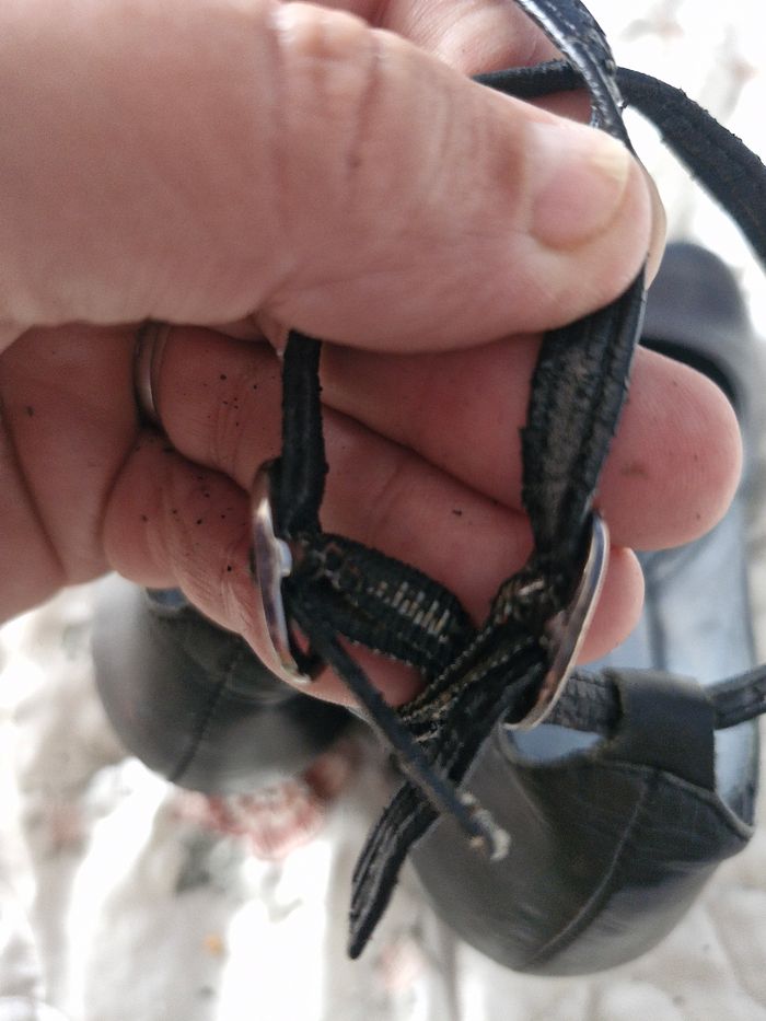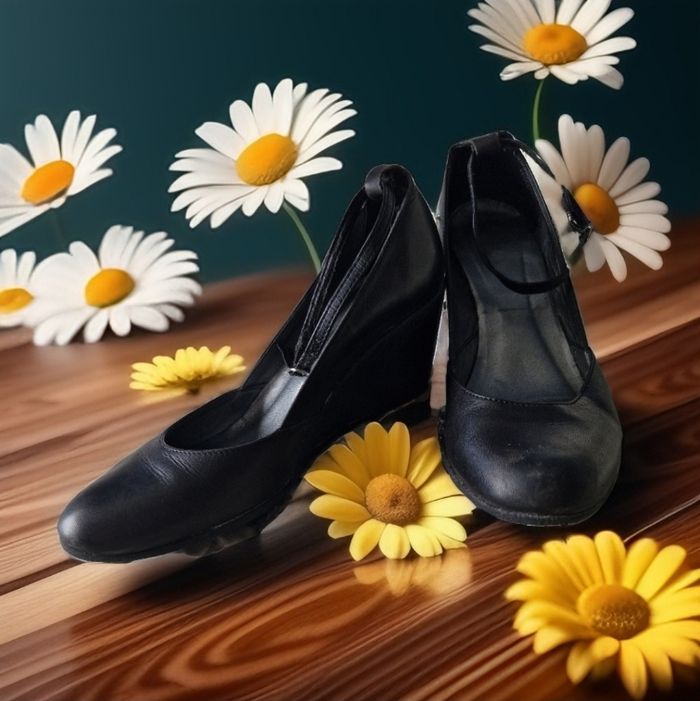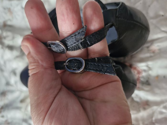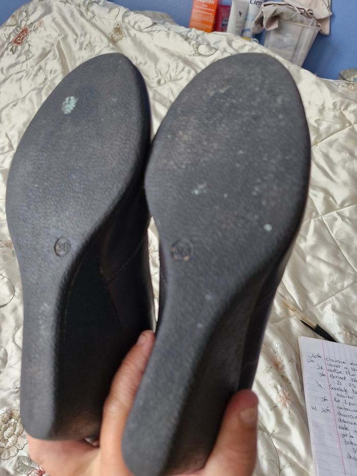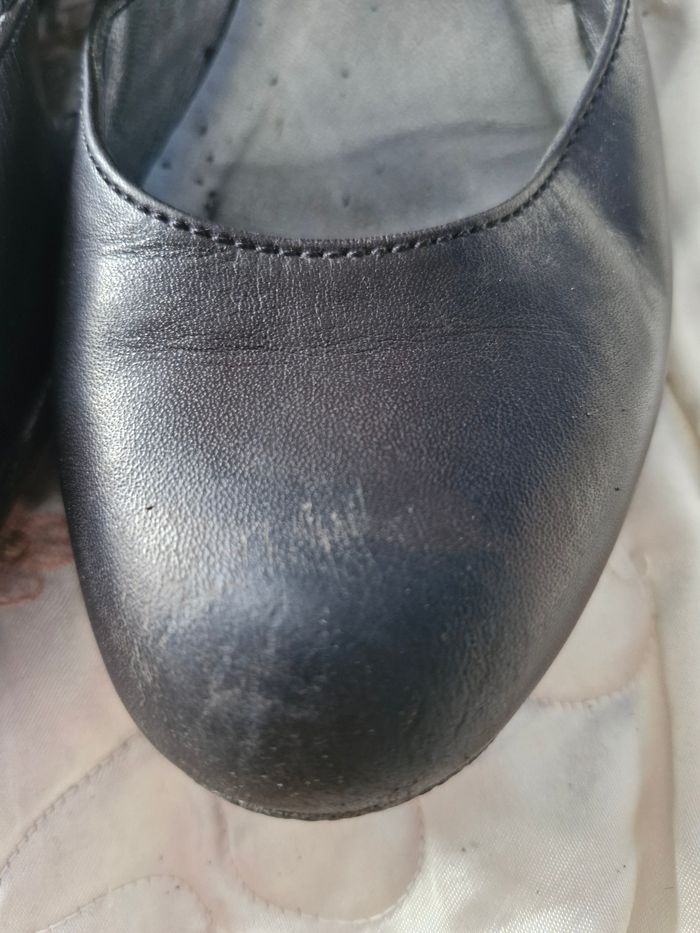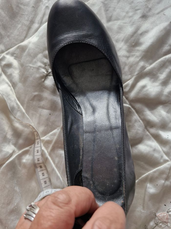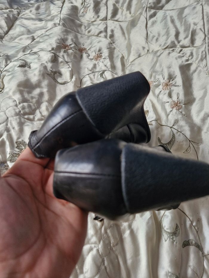 Superbes ballerines en cuir rigide, sur un talon compensé de 6cms Petites brides à boucle sur la cheville Quelques défauts visibles sur les photos Traces d'usure, frottement sur l'avant, l'arrière et l'intérieur des brides qui s'effrite un peu a l'enfilage Ne pas hésiter à créer un lot pour profiter des réductions actives dès 2 articles #naya59199chaussurefemme #naya59199chaussure #naya59199chaussurep38