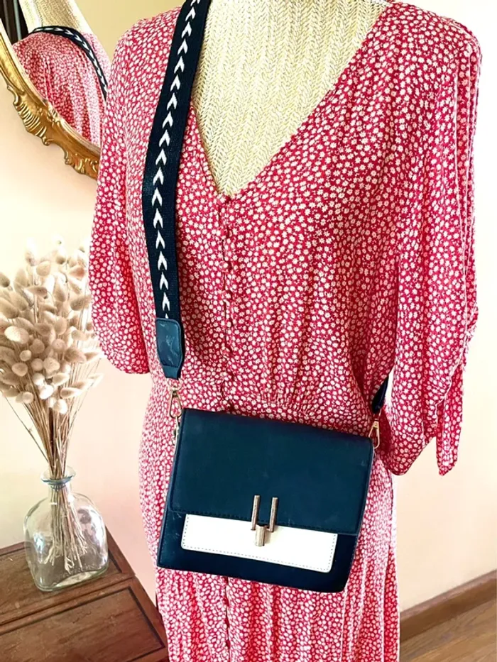 Sac à Main Noir et Blanc avec Bandoulière Tendance