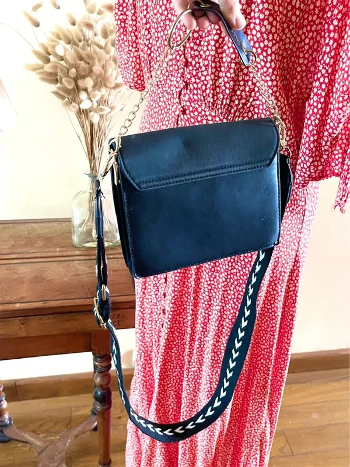 Sac à Main Noir et Blanc avec Bandoulière Tendance - photo numéro 11