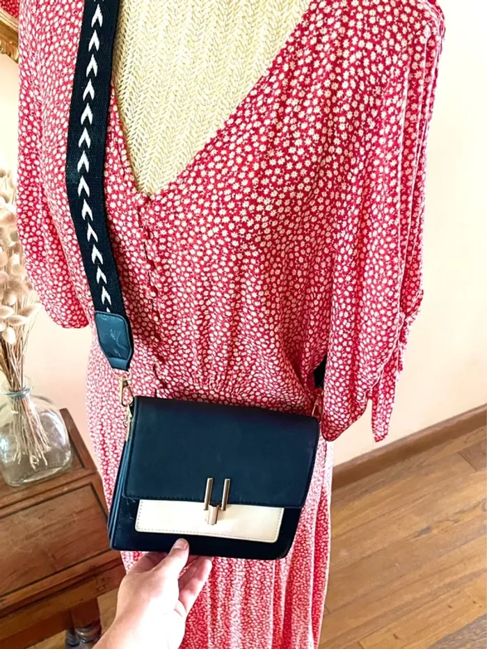 Sac à Main Noir et Blanc avec Bandoulière Tendance - photo numéro 2