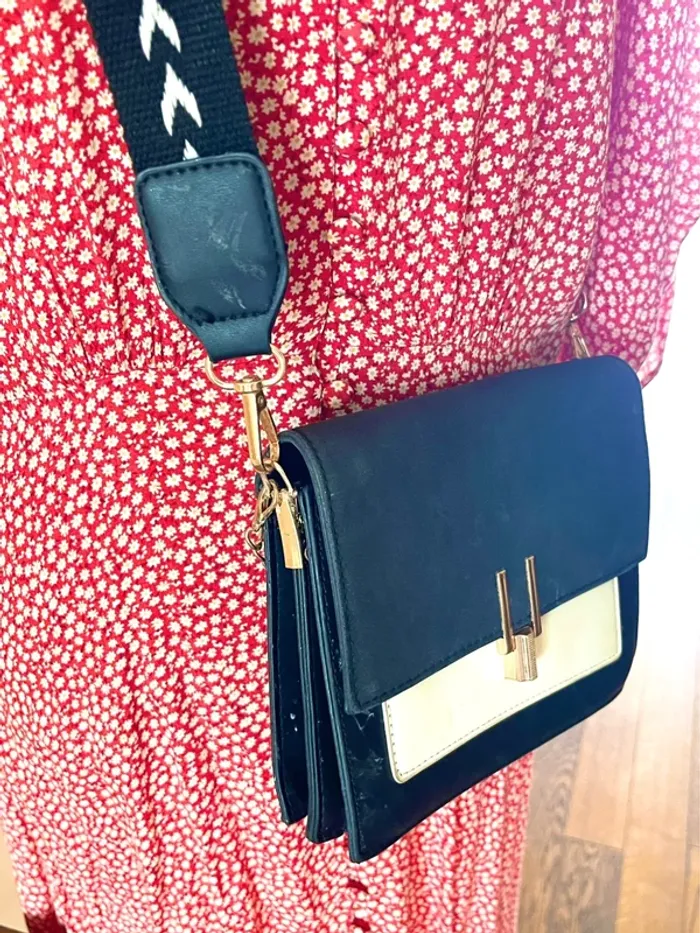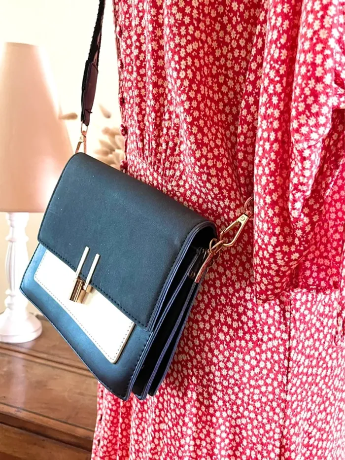 Sac à Main Noir et Blanc avec Bandoulière Tendance - photo numéro 1