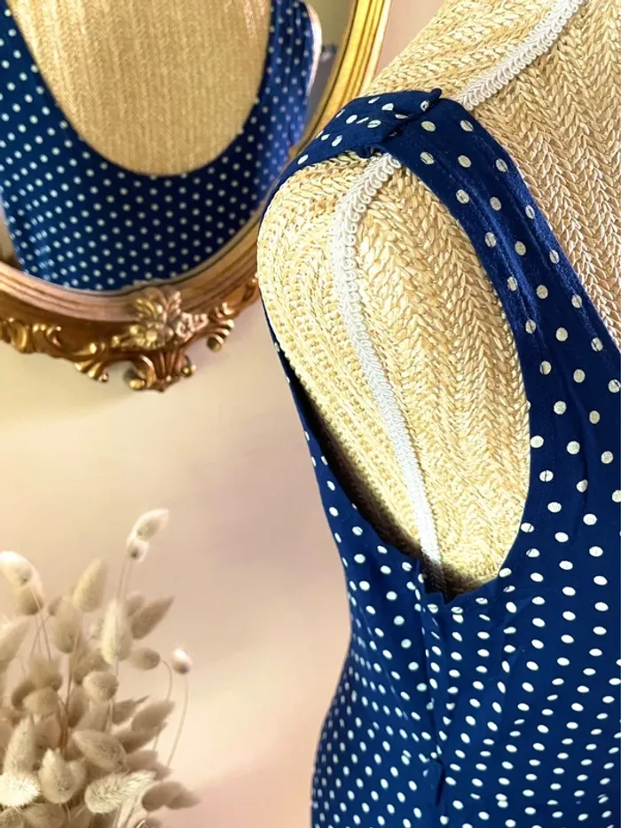 Robe Évasée avec Pois - Bleu Marine 🌟** Ajoutez du style à votre garde-robe avec cette jolie robe à pois ! 🎉 ✨ **Détails :** - Bretelles larges et confortables pour un maintien parfait - Encolure ronde, idéale pour tous les styles - Imprimé à pois blancs sur fond bleu marine, parfait pour un look rétro seventies - Jupe évasée qui apporte fluidité et légèreté à vos mouvements Un must-have pour vos journées d'été ou vos occasions décontractées, alliant confort et élégance ! 🔍 **Mots clés** : robe évasée, à pois, bleu marine, été, rétro, chic, mode 🎁 Envoi rapide et soigneusement emballé 👗 Jetez un œil à mon dressing : plein de jolies trouvailles dès 1€ ! 💰 Prix dégressifs si vous prenez plusieurs articles #RobeÉvasée #ÀPois #ModeÉté #BleuMarine #Chic #StyleRétro #Fashion #seventies #pois #vintage