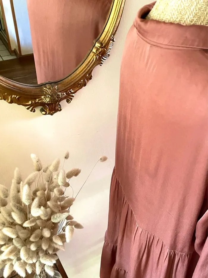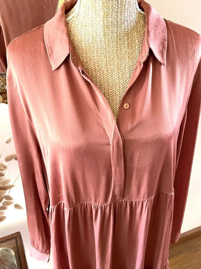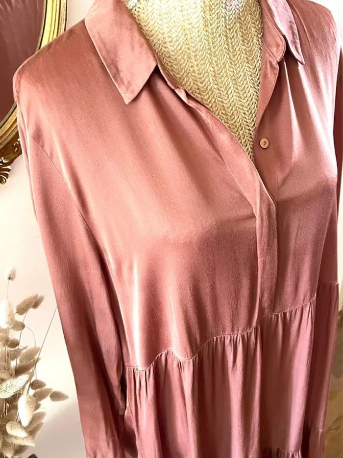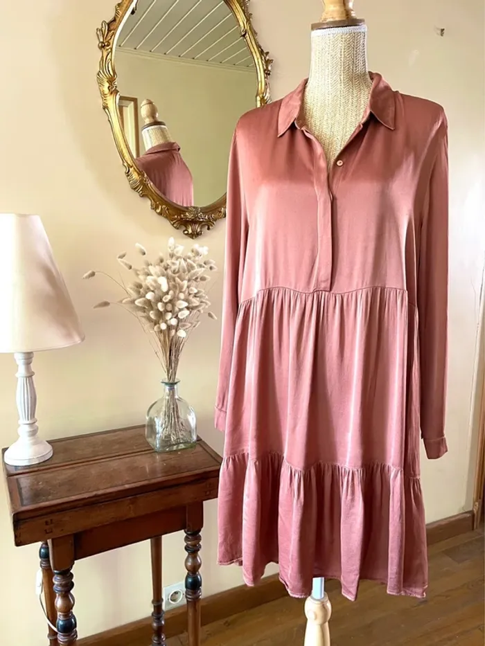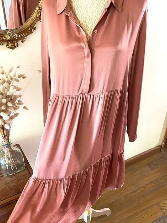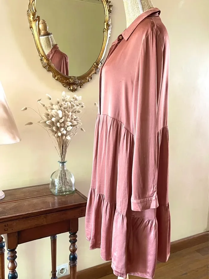 Robe rose satinée plissée à manches longues – Zara (Taille XL) - photo numéro 17
