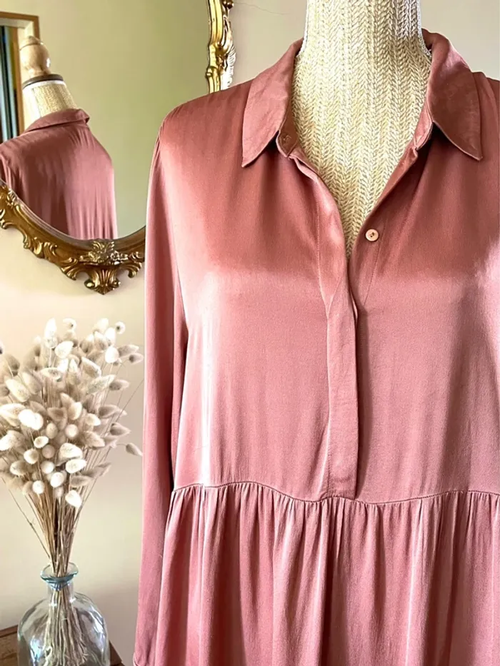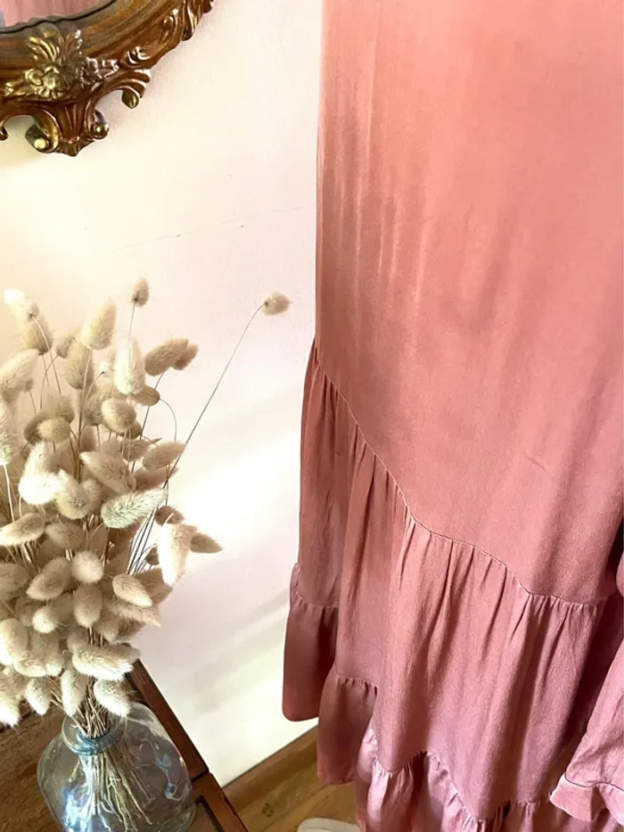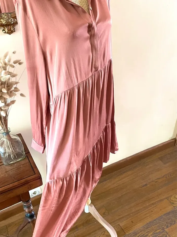 Robe rose satinée plissée à manches longues – Zara (Taille XL) - photo numéro 13