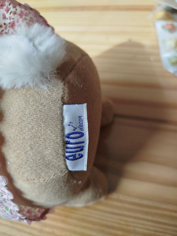 Peluches lapine avec fleur rose et robe liberty marque euro décor