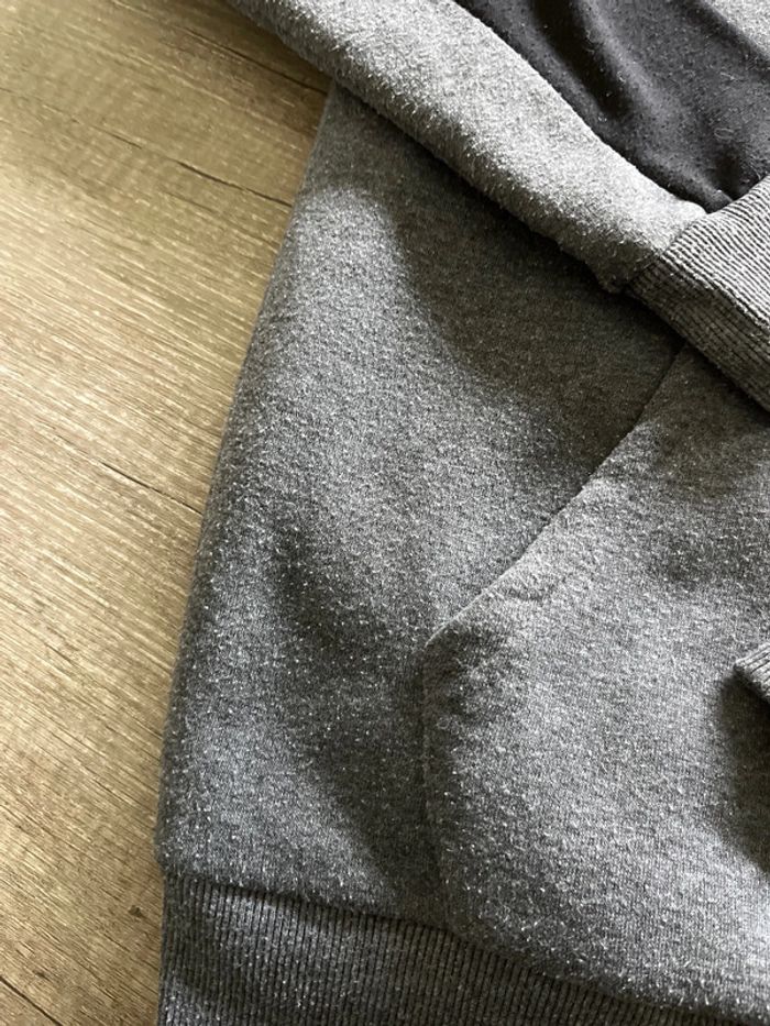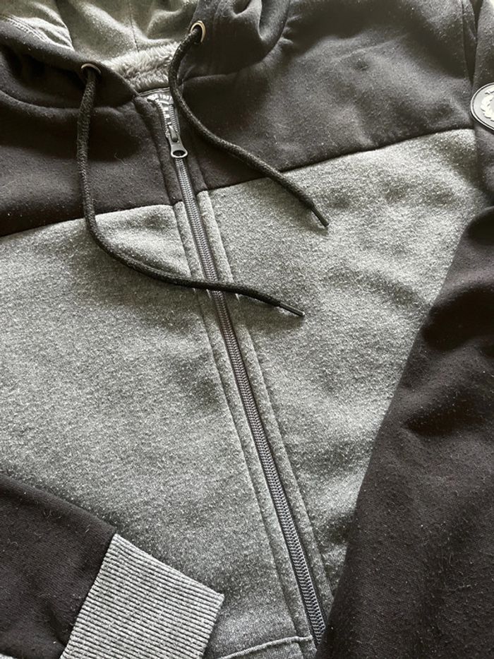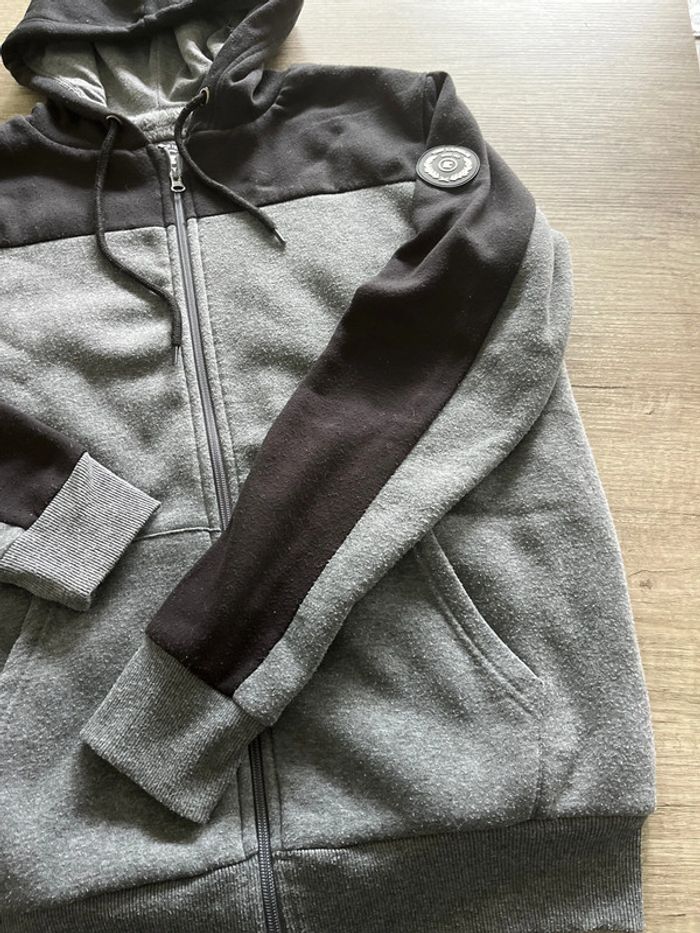 Sweat à capuche fourré en très bon état. Le tissu gris a légèrement bouloché mais l’état général est très bon. Taille étiquette : S Mon fils le portait à 14-15 ans. #14ansst67 #16ansst67 #adultest67