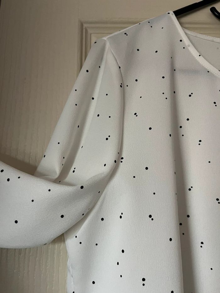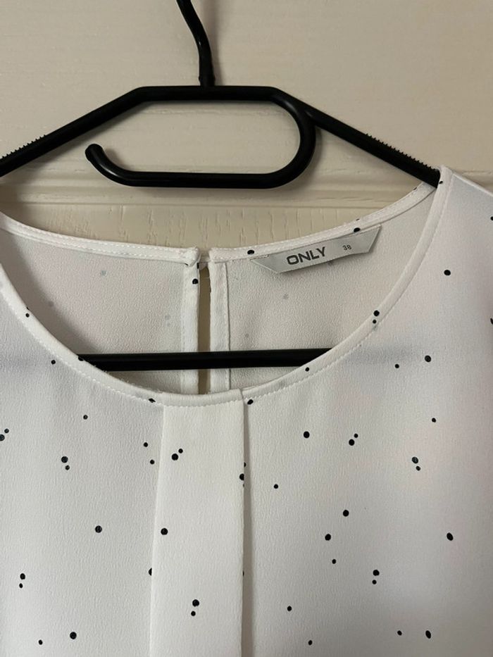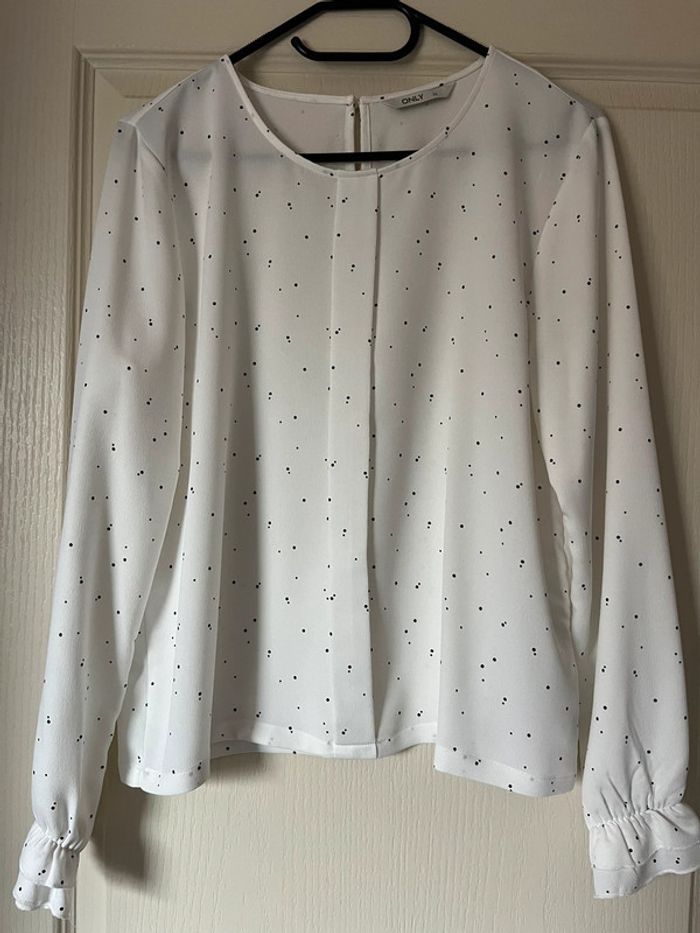 Très jolie blouse manches longues, à volants. Col arrondi. Blanche à pois noirs. Neuve jamais portée #adultest67 #adultesst67 #only #only38