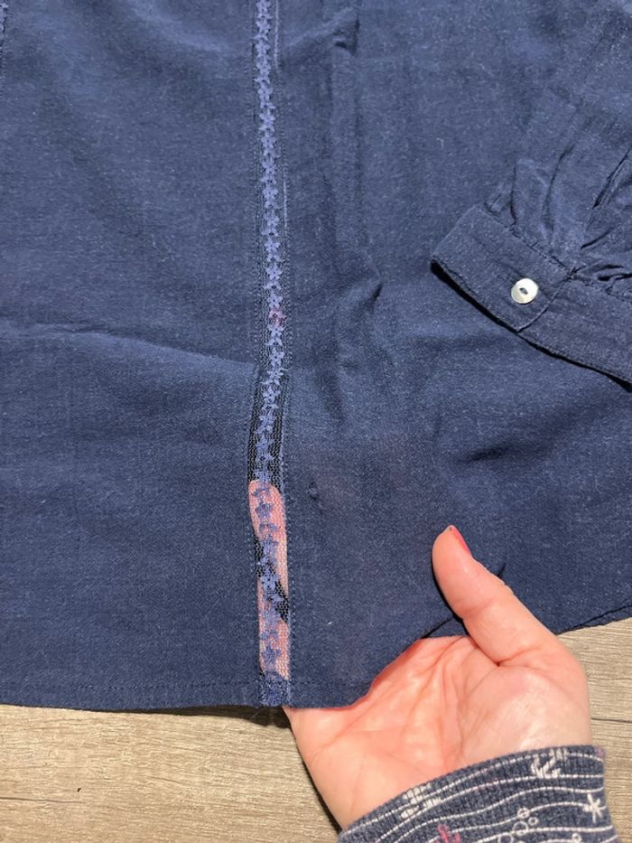 Blouse manches longues en très bon état, seul un léger défaut sur l’avant bas, dernière photo. Non visible quand elle est portée.