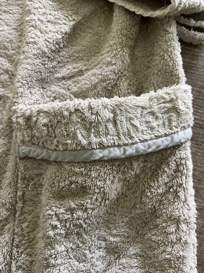 Long peignoir Calvin Klein. Gris. Je mesure 1,68m il m’arrivait a mi mollets. En très bon état, juste la couleur qui a un peu déteint dans la Nuque, voir photo. Mais état propre et impeccable par ailleurs. Marque écrite sur la poche gauche (photo) Taille M 100% coton #adultest67 #adultesst67