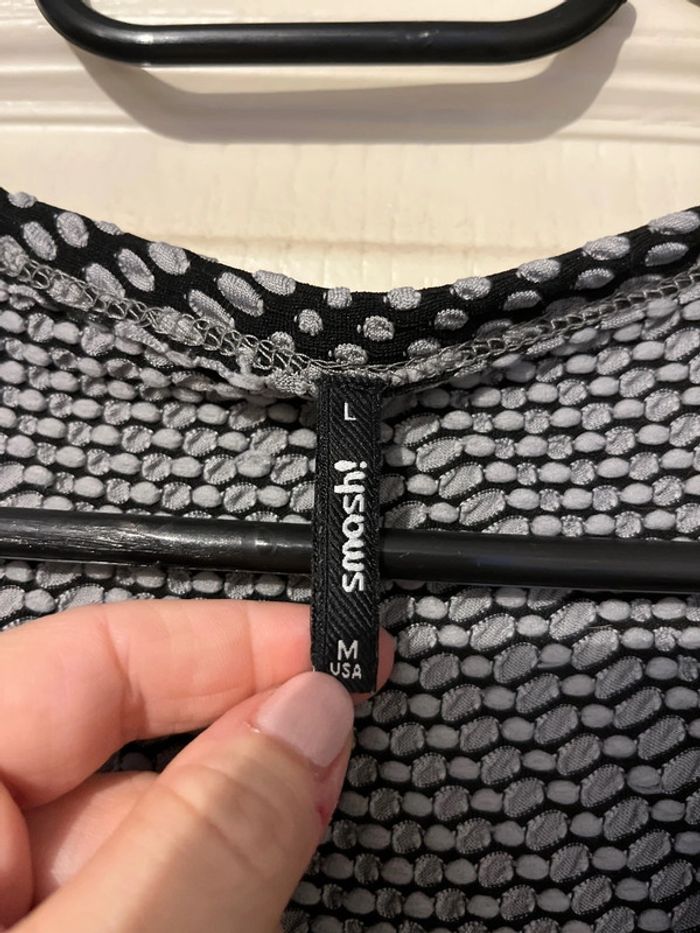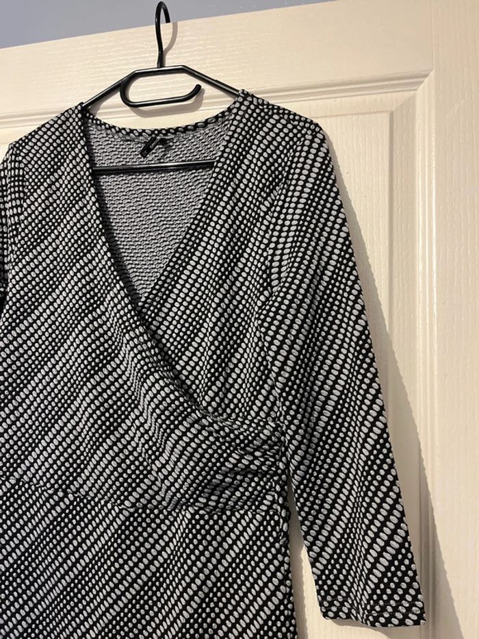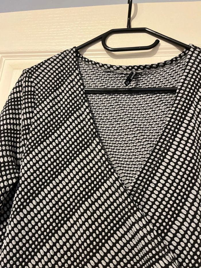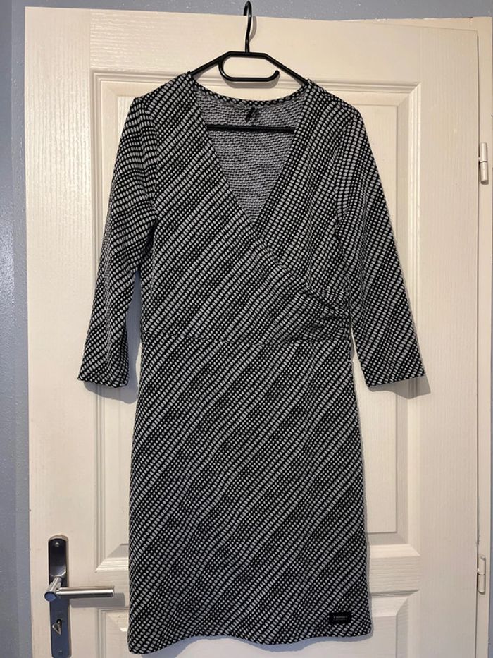 Belle robe Smash! Décolleté croisé, cache cœur. Matière légère et stretch. Au dessus du genou pour moi qui mesure 1,68m. Liens à la taille pour éventuellement passer une ceinture noire. #adultest67