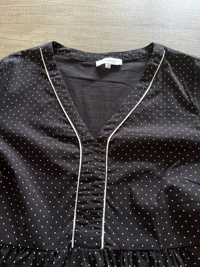 Blouse manches 3/4, noire à poids blancs, col en v. Neuve : lavée, jamais mise. #adultest67