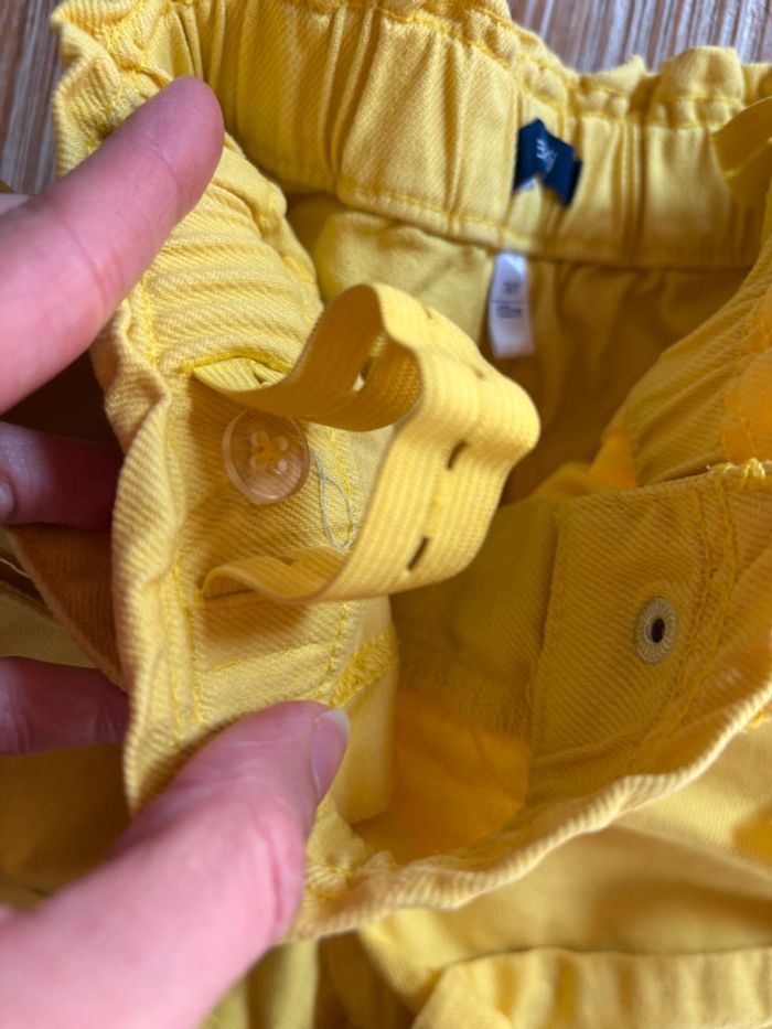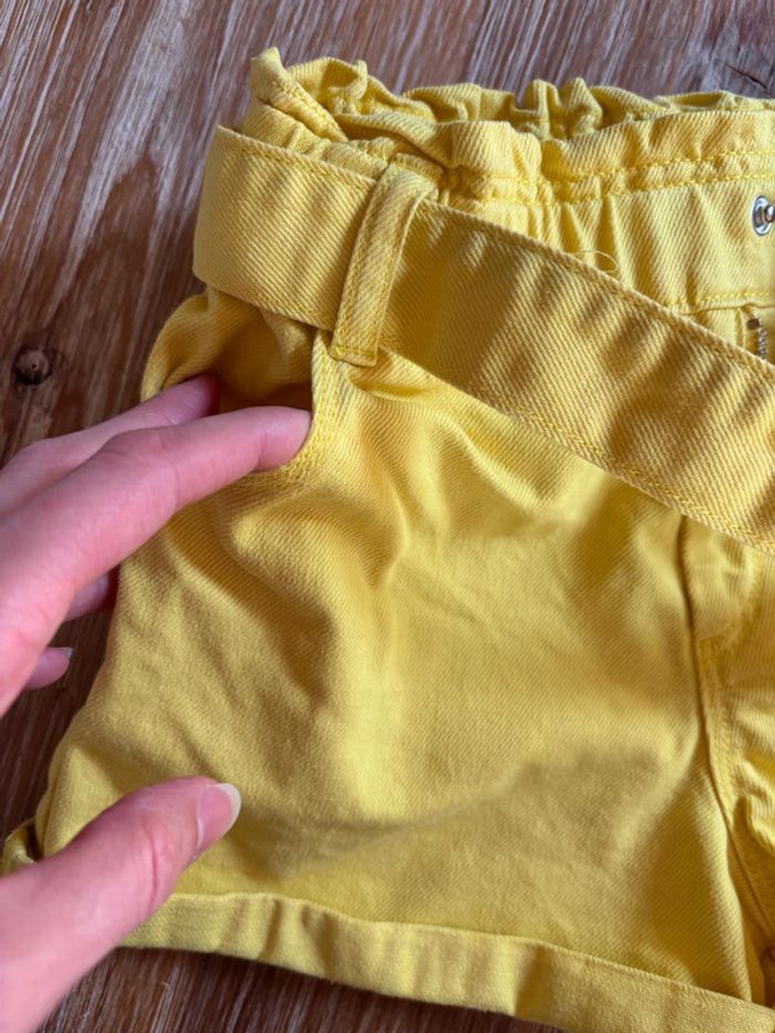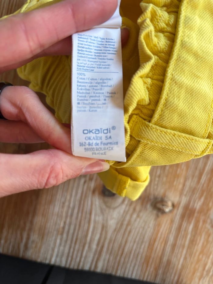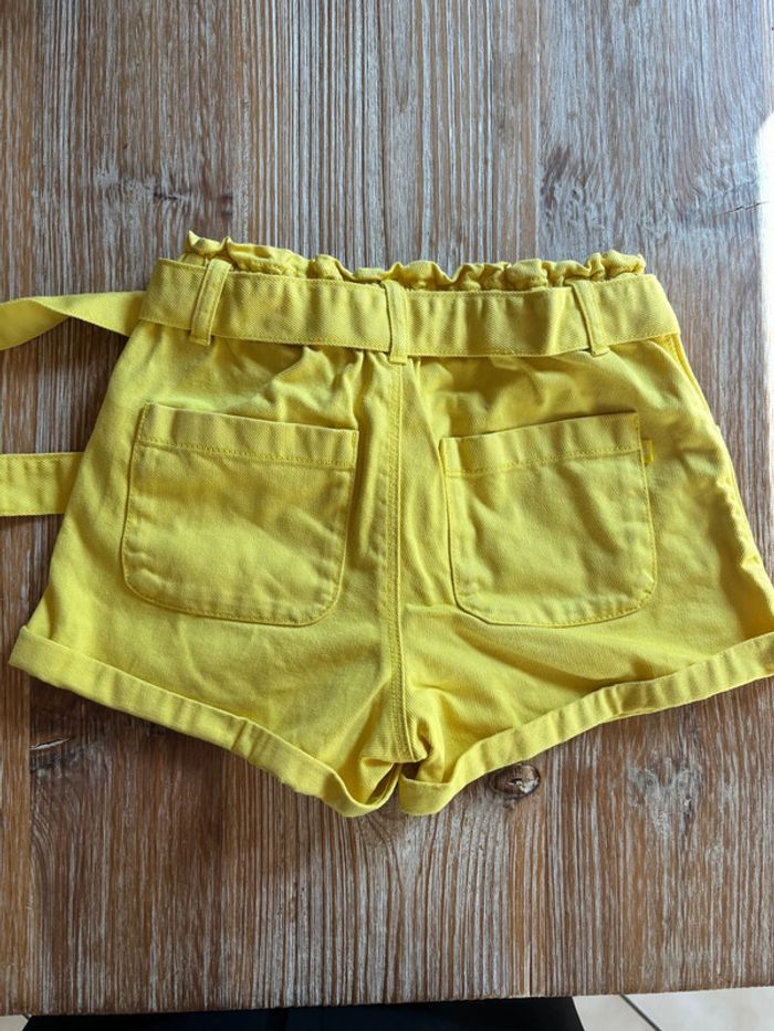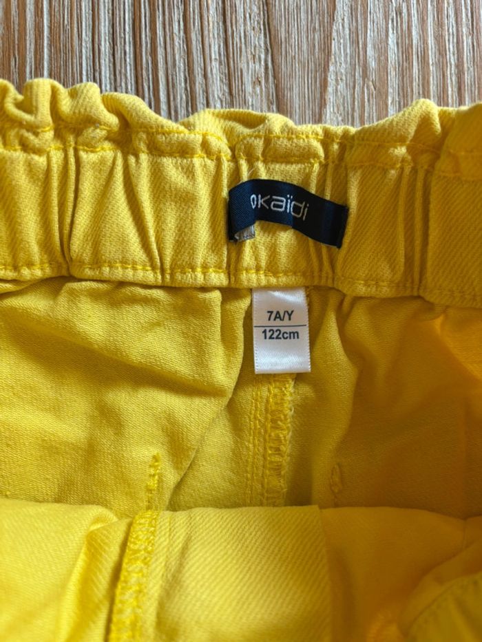 Porté quelques fois en très bon état Short jaune Okaïdi Taille 7 ans Avec ceinture à nouer Taille réglable Bouton pression et fermeture éclair