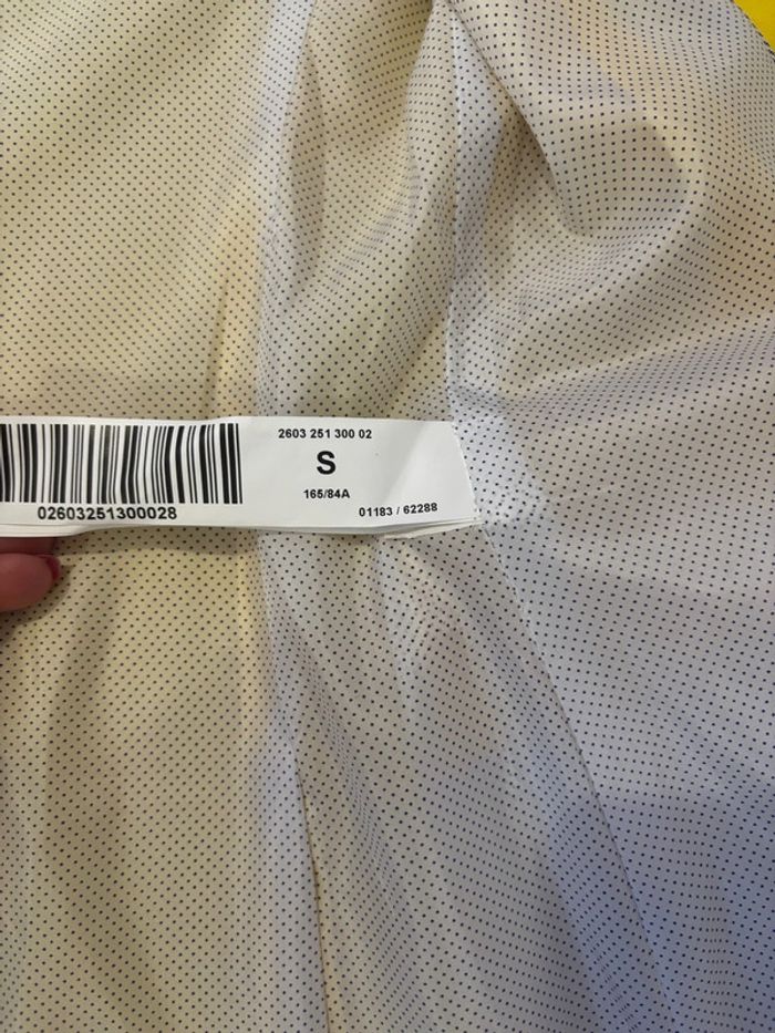 Neuve jamais portée avec étiquette d’achat Veste Stradivarius Taille S Couleur jaune Un bouton Les manches peuvent se relever et font apparaître des petits boutons jaunes Intérieur blanc à pois noirs 2 poches A noter comporte une petite tache sur l’épaule droite Okaïdi / Kiabi / Desigual / Sergent Major / H&M / Tex / C&A / Gemo / Jacadi / Du pareil au même DPAM / Disney / Petit Bateau / Tape à l’œil / Orchestra / La Halle / Lulu Castagnette / In Extenso / Tissaia / Camaïeu / Stradivarius / Chaussea / Bata / André / Cyrillus / Gap / princesses / Monsieur madame / école des loisirs / Hachette / Peppa pig / Mulan / Reine des Neiges / Ariel la petite sirène / Blanche-neige / Aurore la Belle au bois dormant / la Belle et la bête