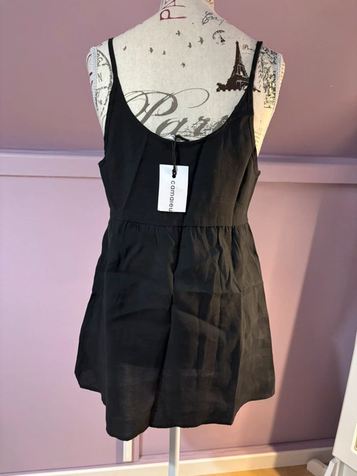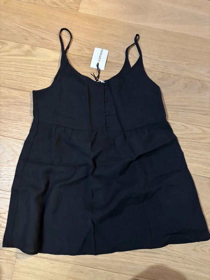 Neuf jamais porté avec étiquette Débardeur noir Camaïeu Style blouse Plutôt long Taille S À boutons Okaïdi / Kiabi / Desigual / Sergent Major / H&M / Tex / C&A / Gemo / Jacadi / Du pareil au même DPAM / Disney / Petit Bateau / Tape à l’œil / Orchestra / La Halle / Lulu Castagnette / In Extensi / Tissaia / Camaïeu / Stradivarius / Chaussea / Bata / André / Cyrillus / Gap